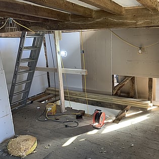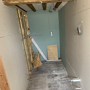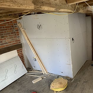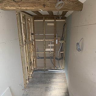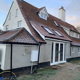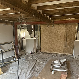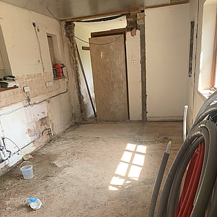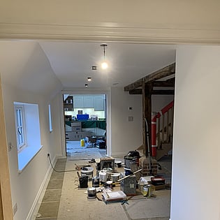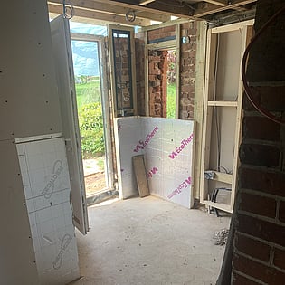 We have been employed by our clients to refurb their old house and bring it back to life. As you can see we are well underway with this project and once finished it will be well insulated with underfloor heating to the ground floor and an air source heat pump which means it will help with green energy in the future.